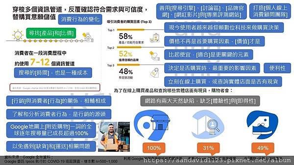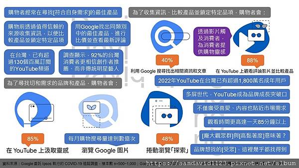 在購買決策初期,消費者已習慣透過可信的來源蒐集資訊並進行比較,包括:品牌官網、開箱影片、網路評論、KOL推薦與朋友口碑等。而這些接觸點便構成所謂[零時刻行銷(Zero Moment of Truth, ZMOT)]。例如,在購買相機前,消費者可能會參考[YouTube實拍對比]、[部落客評測]與電商平台的[用戶回饋]等方式取得相關資訊。